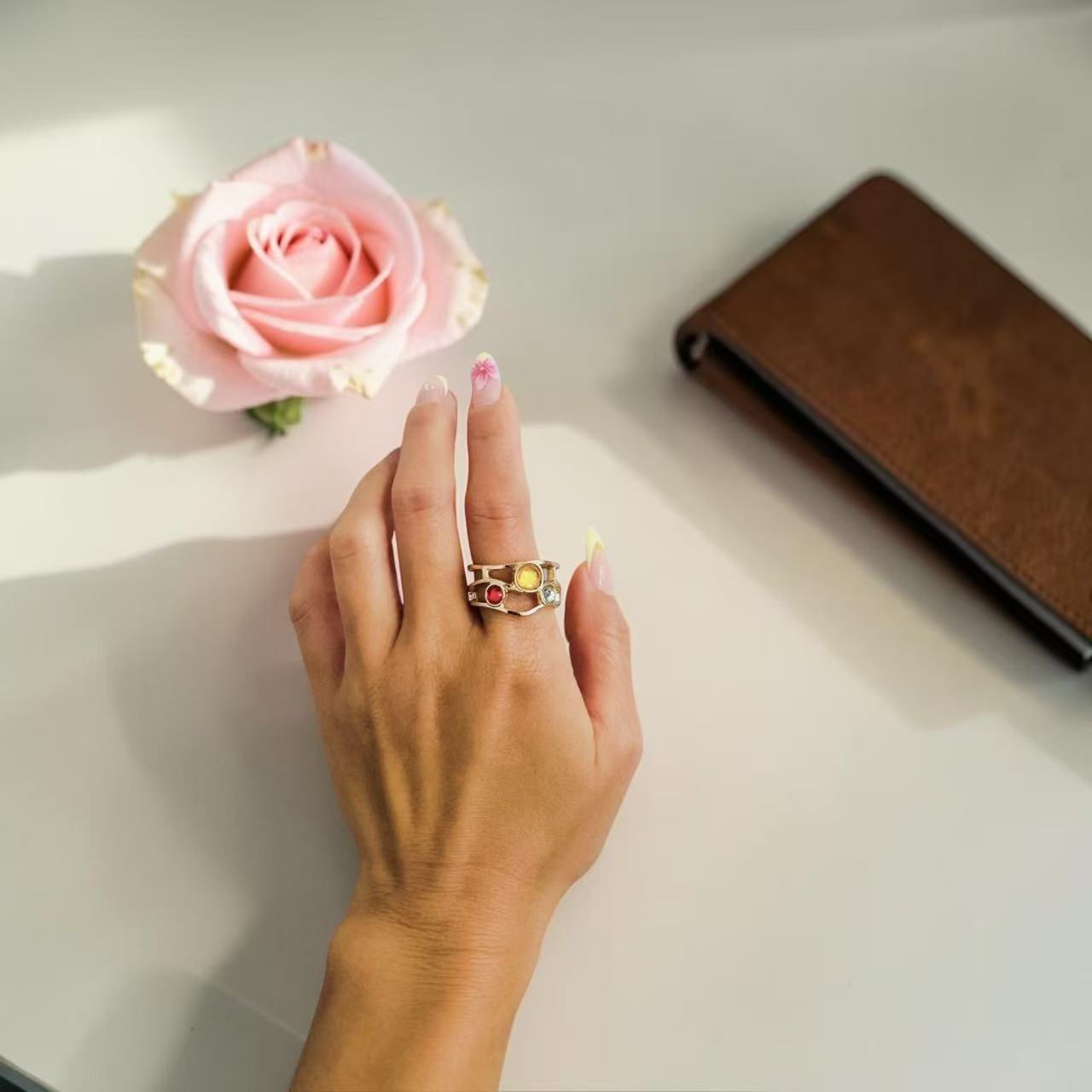 Add a playful yet refined touch to your everyday style with this Abstract Multi-Stone Open Ring.