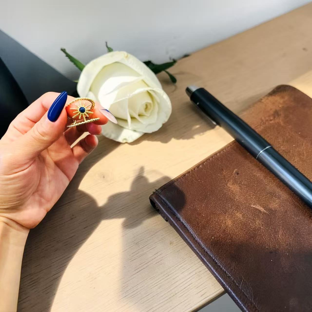 To maintain its shine, avoid prolonged contact with water, perfume, and harsh chemicals. Store in a dry place when not in use.