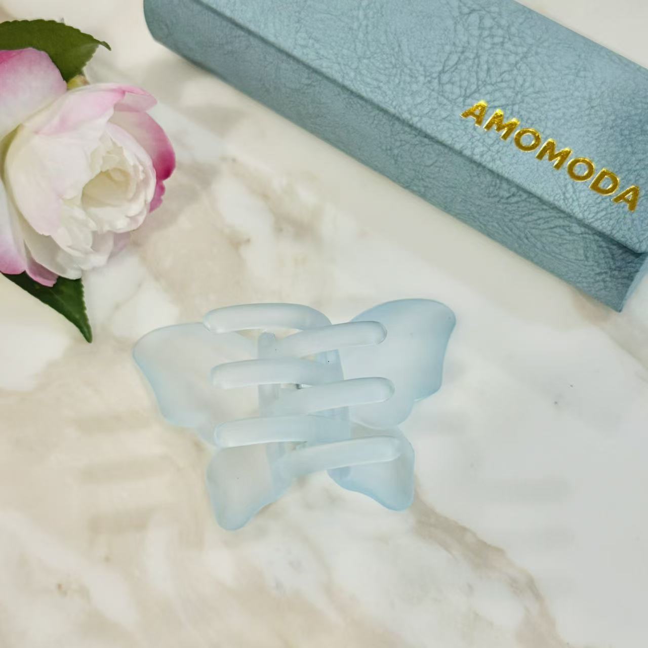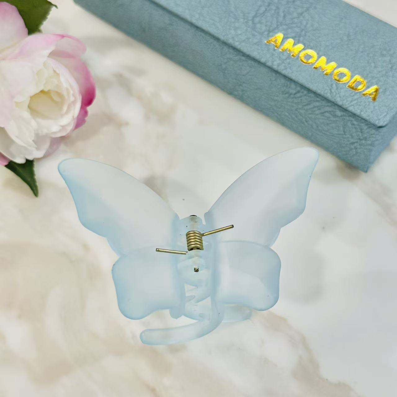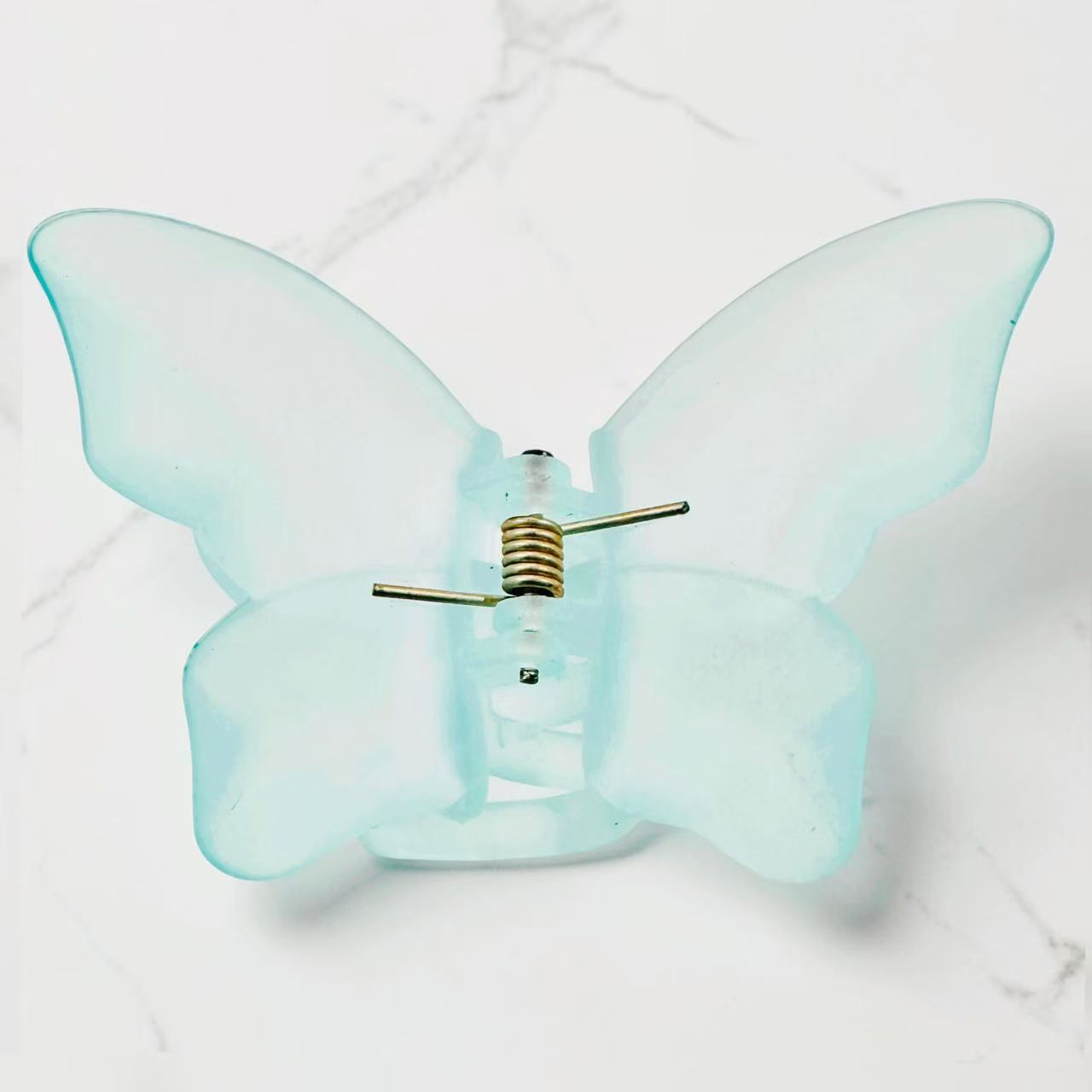 Bring a fresh, calming touch to your everyday style with this frosted butterfly claw clip in soft blue.