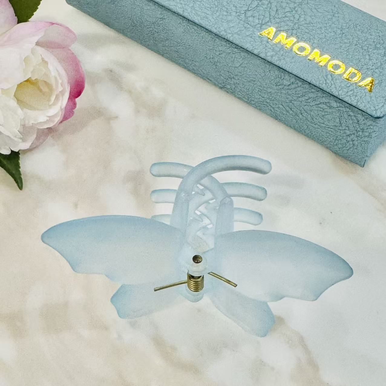 Frosted Butterfly Claw Clip – Soft Blue
