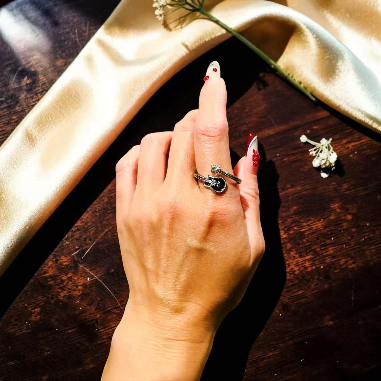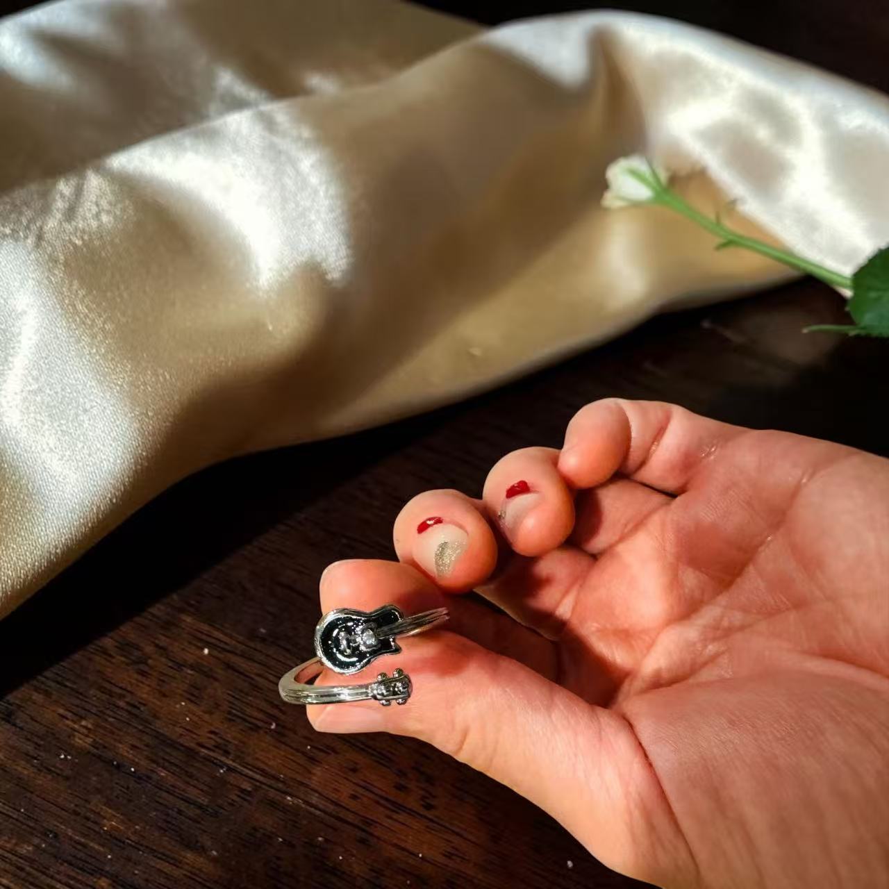 Add a playful, music-inspired touch to your everyday style with this Guitar Accent Ring.