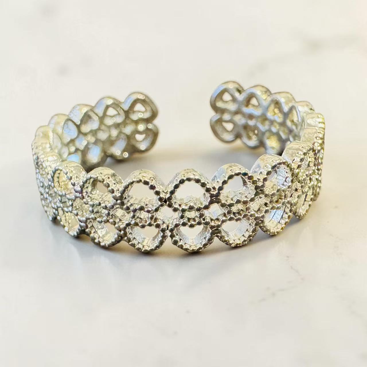 • Design: Lace-inspired open band