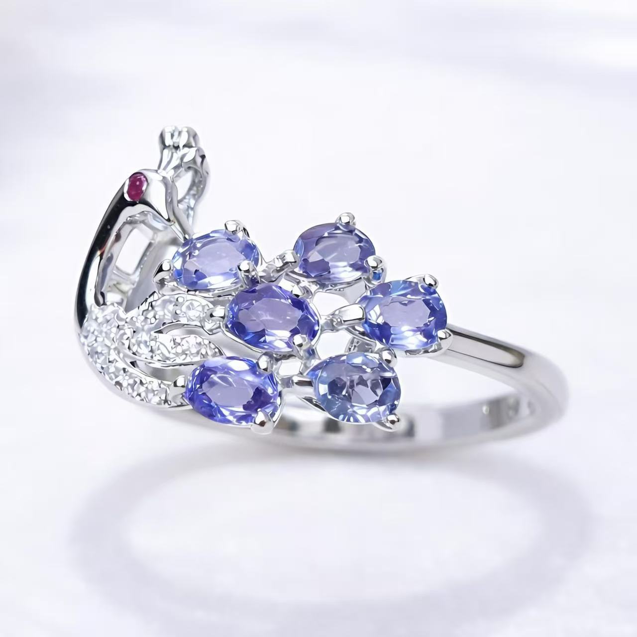 Featuring a sculpted peacock silhouette adorned with sparkling clear crystal accents and soft lilac oval-cut crystals along the body, this ring blends flowing movement with refined craftsmanship. The polished silver-tone finish enhances the cool-toned brilliance of the crystals, creating a luminous and dimensional look.