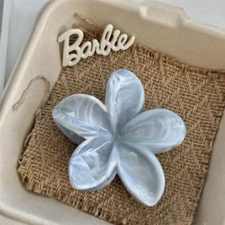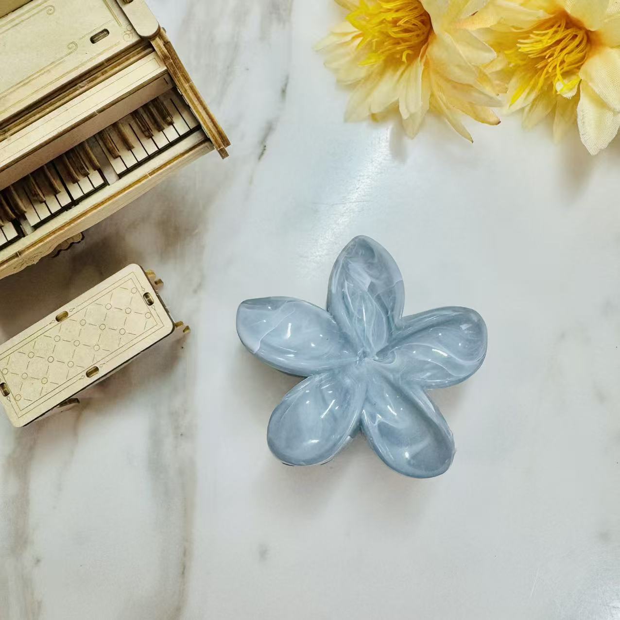 Add a touch of soft elegance to your everyday look with this pearl frangipani claw clip.