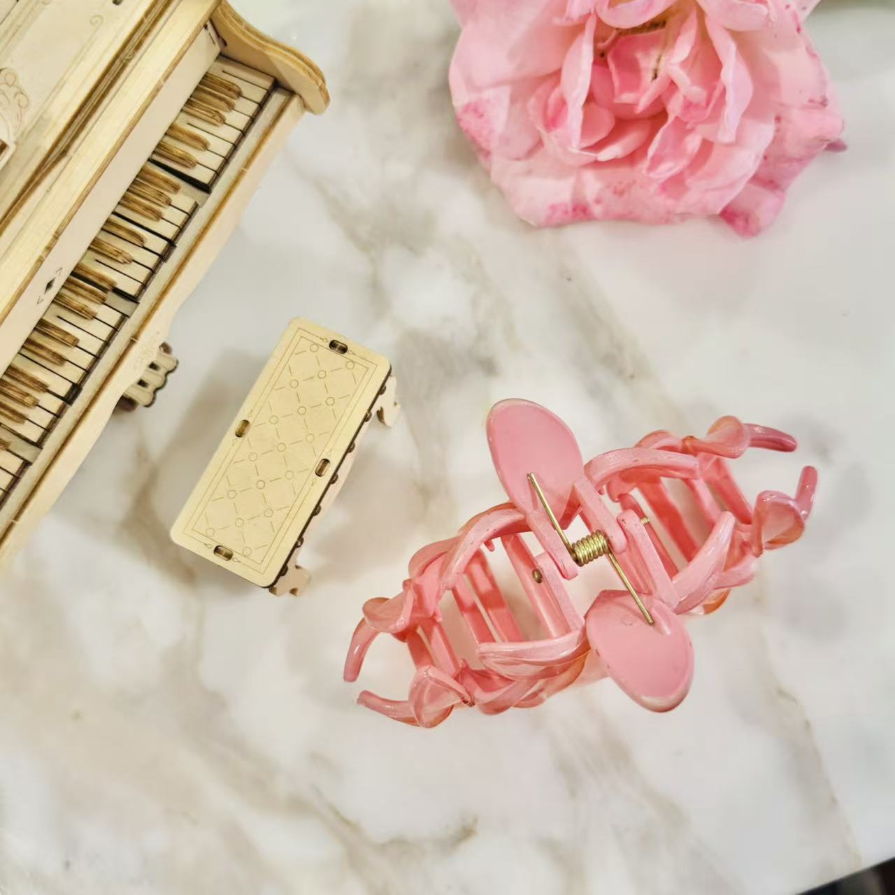 Larger in size yet lightweight and comfortable, it provides a secure hold for thicker hair or fuller styles — perfect for effortless updos, half-up styles, or creating a more styled, elevated look. Whether you’re heading to brunch, a beach day, or a special occasion, this clip adds a bold yet feminine charm.