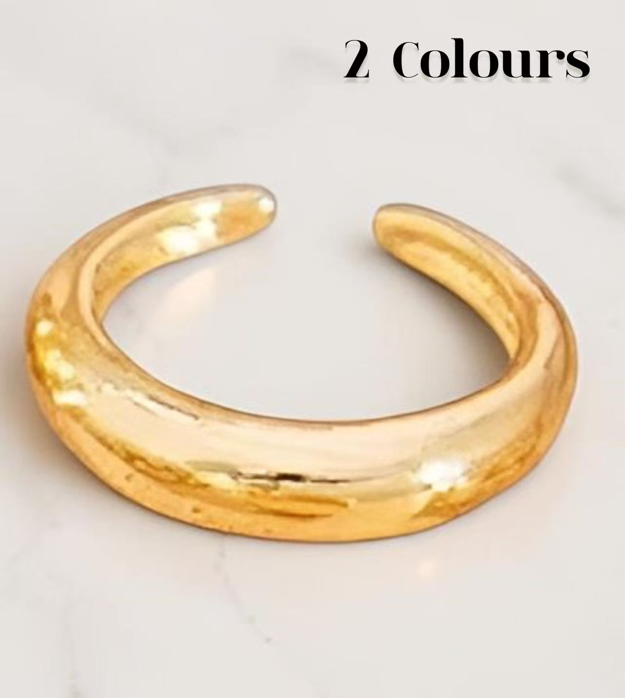 Available in both gold and silver tones, this adjustable open ring offers versatility and comfort — perfect for everyday wear, whether styled alone for a refined look or paired with other pieces for a layered effect.