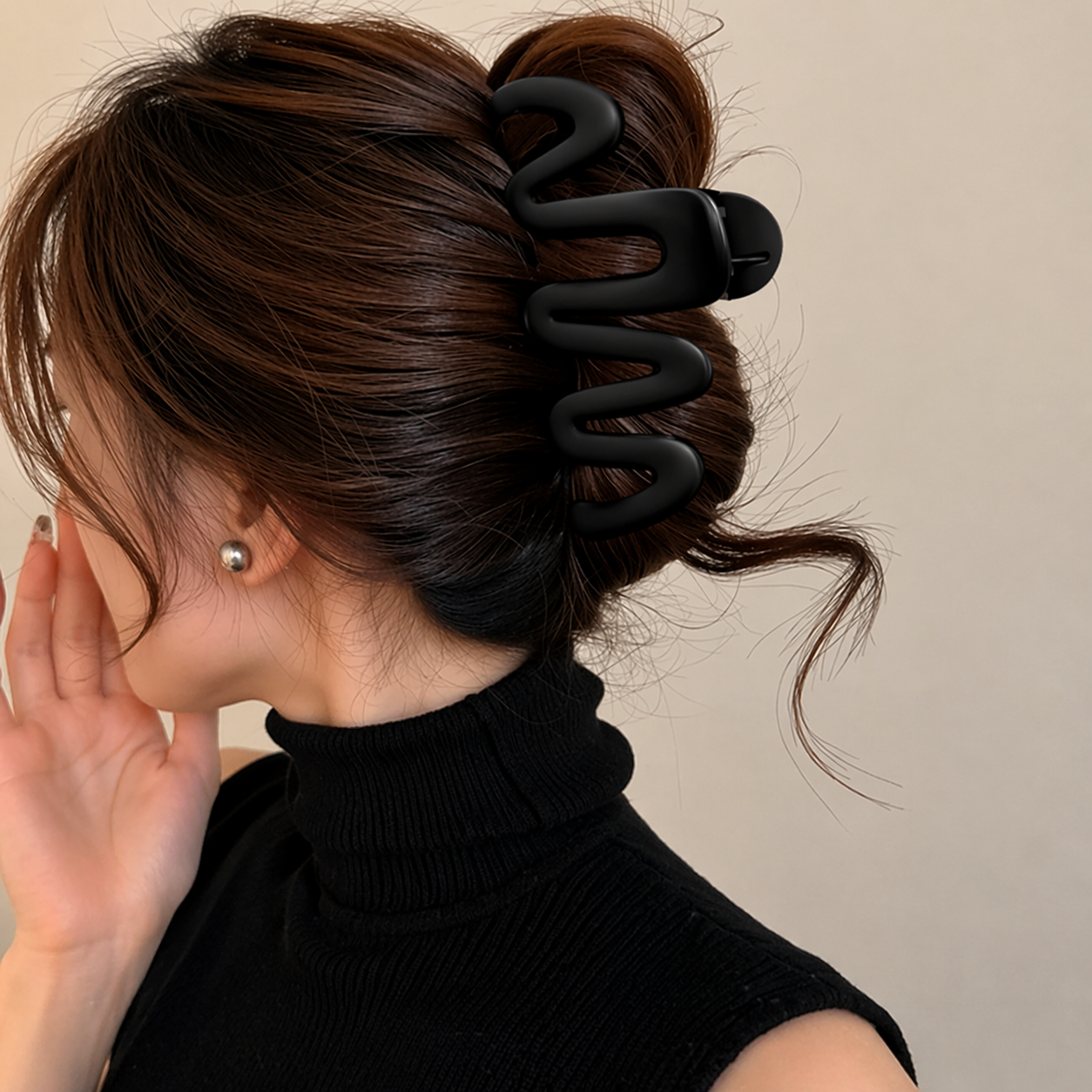 Bring a modern, sculptural touch to your everyday styling with this wave-inspired claw clip in matte black.